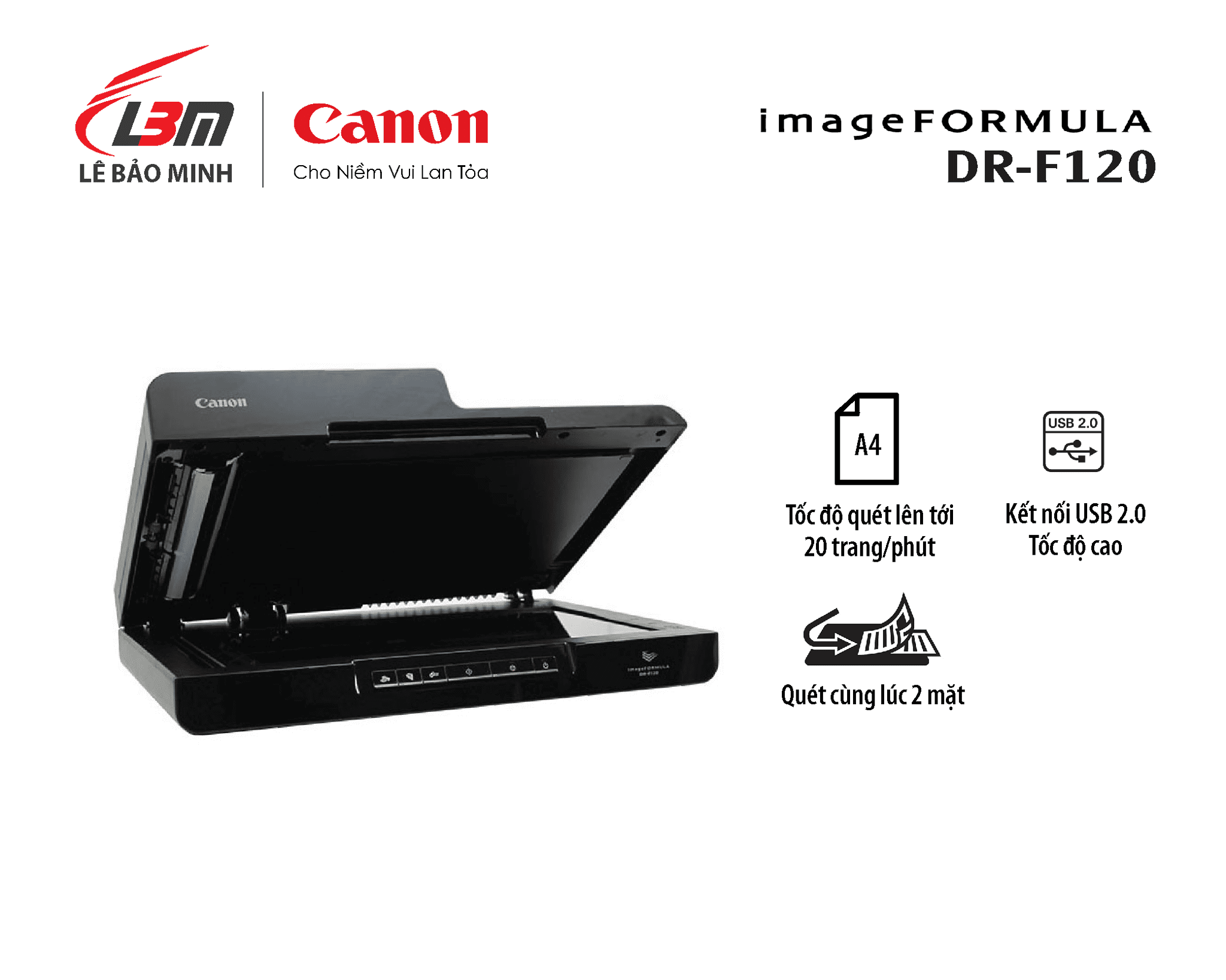 | Tốc Độ Scan | 20 trang/phút (một mặt), 36 trang/phút (2 mặt cùng lúc) |